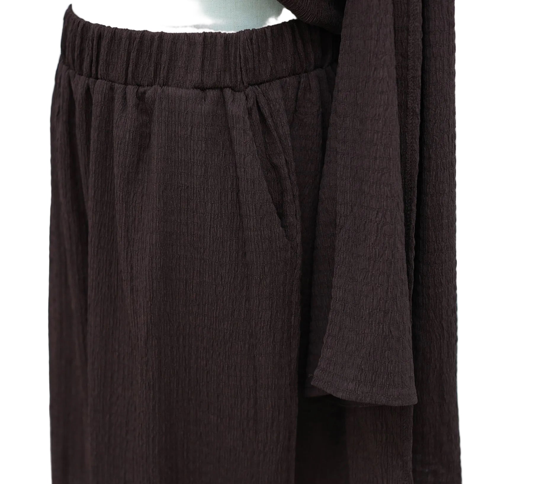 This set includes a 2-piece top and pants, featuring a cowl neck style top with brooch pin. The co-ord is designed with pockets and a elastic waist band for a comfortable fit. Exuding beauty and comfort, this set is suitable for any occasion.